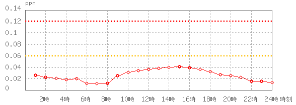 ※グラフ中には0.060ppm(環境基準:1時間値)と0.120ppm(注意報発令の基準:1時間値)に参考として線を記載しています。