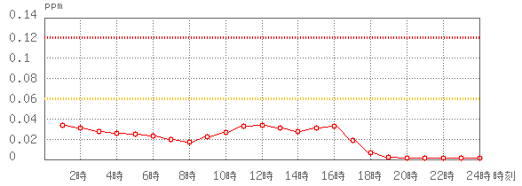 ※グラフ中には0.060ppm(環境基準:1時間値)と0.120ppm(注意報発令の基準:1時間値)に参考として線を記載しています。