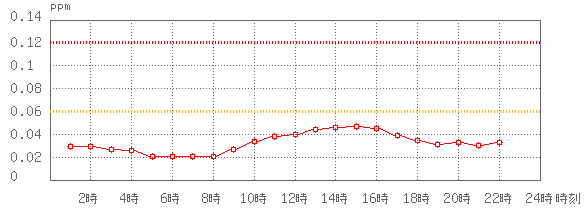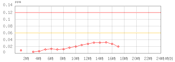 ※グラフ中には0.060ppm(環境基準:1時間値)と0.120ppm(注意報発令の基準:1時間値)に参考として線を記載しています。
