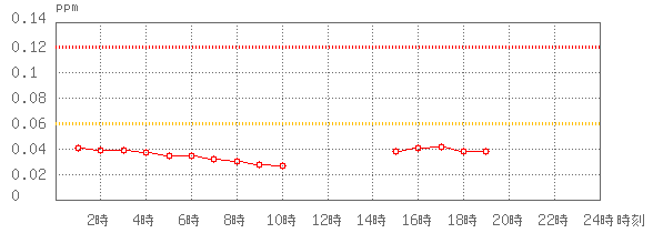 ※グラフ中には0.060ppm(環境基準:1時間値)と0.120ppm(注意報発令の基準:1時間値)に参考として線を記載しています。