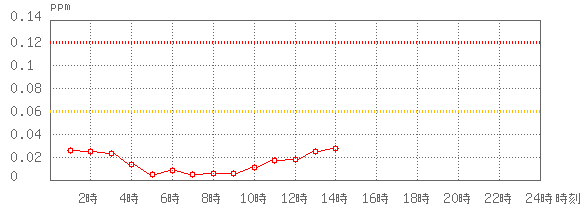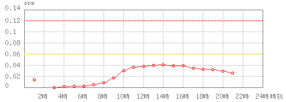 ※グラフ中には0.060ppm(環境基準:1時間値)と0.120ppm(注意報発令の基準:1時間値)に参考として線を記載しています。