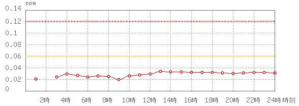 ※グラフ中には0.060ppm(環境基準:1時間値)と0.120ppm(注意報発令の基準:1時間値)に参考として線を記載しています。