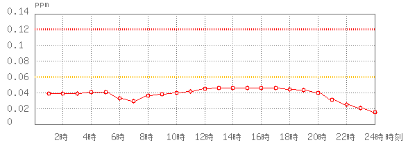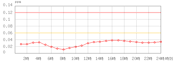 ※グラフ中には0.060ppm(環境基準:1時間値)と0.120ppm(注意報発令の基準:1時間値)に参考として線を記載しています。