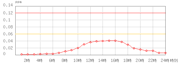 ※グラフ中には0.060ppm(環境基準:1時間値)と0.120ppm(注意報発令の基準:1時間値)に参考として線を記載しています。