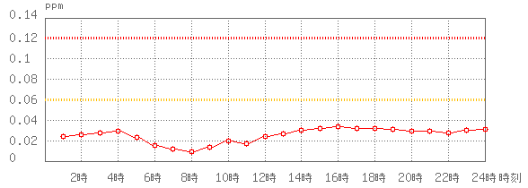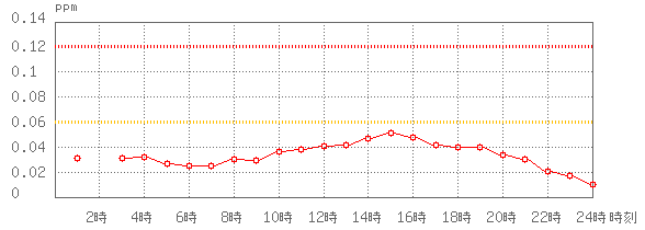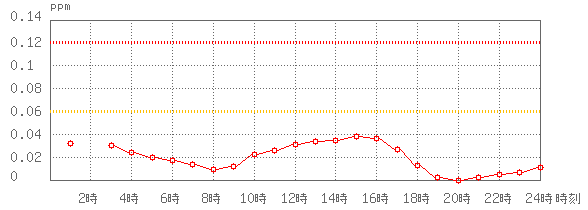 ※グラフ中には0.060ppm(環境基準:1時間値)と0.120ppm(注意報発令の基準:1時間値)に参考として線を記載しています。