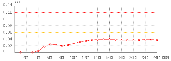 ※グラフ中には0.060ppm(環境基準:1時間値)と0.120ppm(注意報発令の基準:1時間値)に参考として線を記載しています。