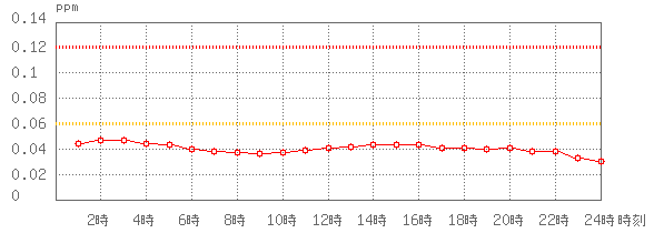 ※グラフ中には0.060ppm(環境基準:1時間値)と0.120ppm(注意報発令の基準:1時間値)に参考として線を記載しています。