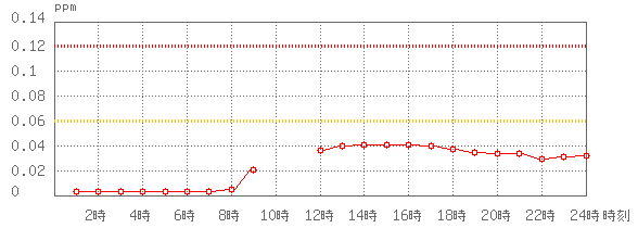 ※グラフ中には0.060ppm(環境基準:1時間値)と0.120ppm(注意報発令の基準:1時間値)に参考として線を記載しています。