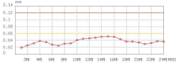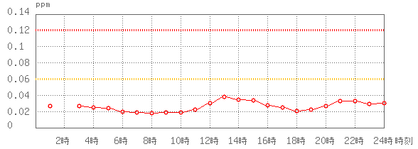 ※グラフ中には0.060ppm(環境基準:1時間値)と0.120ppm(注意報発令の基準:1時間値)に参考として線を記載しています。