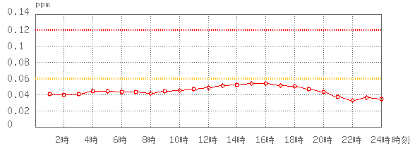 ※グラフ中には0.060ppm(環境基準:1時間値)と0.120ppm(注意報発令の基準:1時間値)に参考として線を記載しています。