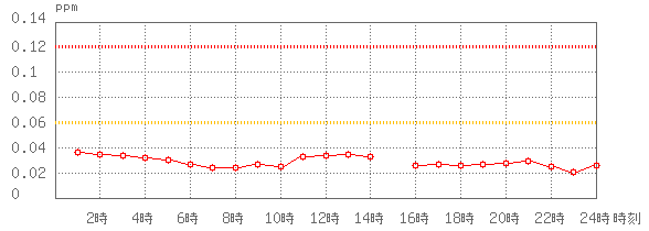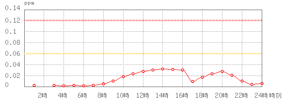 ※グラフ中には0.060ppm(環境基準:1時間値)と0.120ppm(注意報発令の基準:1時間値)に参考として線を記載しています。