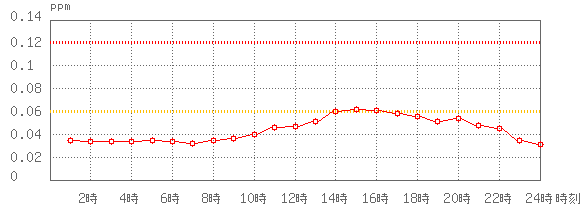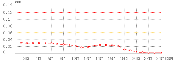 ※グラフ中には0.060ppm(環境基準:1時間値)と0.120ppm(注意報発令の基準:1時間値)に参考として線を記載しています。