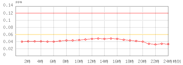 ※グラフ中には0.060ppm(環境基準:1時間値)と0.120ppm(注意報発令の基準:1時間値)に参考として線を記載しています。