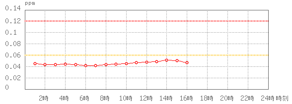 ※グラフ中には0.060ppm(環境基準:1時間値)と0.120ppm(注意報発令の基準:1時間値)に参考として線を記載しています。