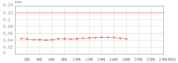 ※グラフ中には0.060ppm(環境基準:1時間値)と0.120ppm(注意報発令の基準:1時間値)に参考として線を記載しています。