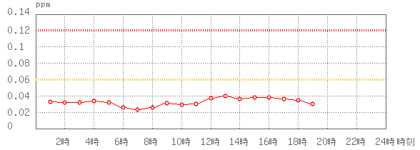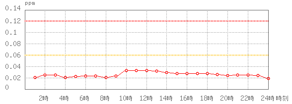 ※グラフ中には0.060ppm(環境基準:1時間値)と0.120ppm(注意報発令の基準:1時間値)に参考として線を記載しています。