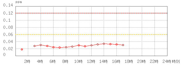 ※グラフ中には0.060ppm(環境基準:1時間値)と0.120ppm(注意報発令の基準:1時間値)に参考として線を記載しています。