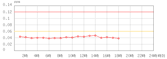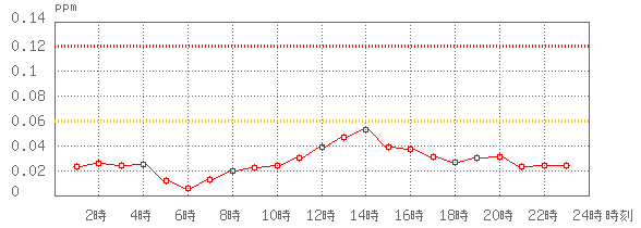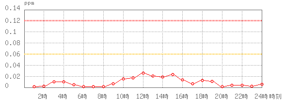 ※グラフ中には0.060ppm(環境基準:1時間値)と0.120ppm(注意報発令の基準:1時間値)に参考として線を記載しています。