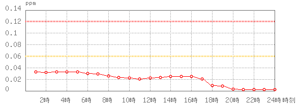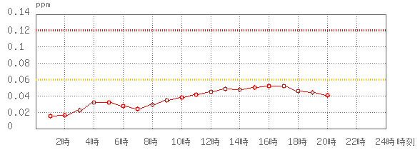 ※グラフ中には0.060ppm(環境基準:1時間値)と0.120ppm(注意報発令の基準:1時間値)に参考として線を記載しています。