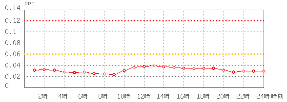 ※グラフ中には0.060ppm(環境基準:1時間値)と0.120ppm(注意報発令の基準:1時間値)に参考として線を記載しています。