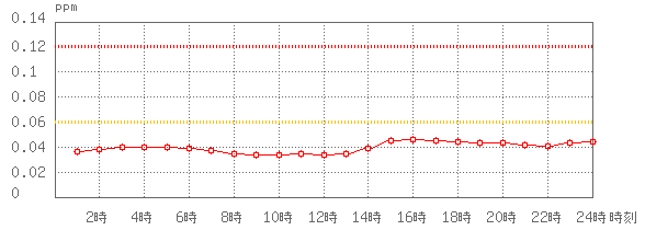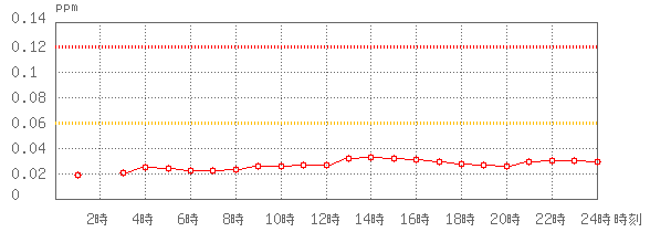 ※グラフ中には0.060ppm(環境基準:1時間値)と0.120ppm(注意報発令の基準:1時間値)に参考として線を記載しています。