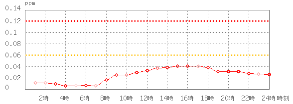 ※グラフ中には0.060ppm(環境基準:1時間値)と0.120ppm(注意報発令の基準:1時間値)に参考として線を記載しています。