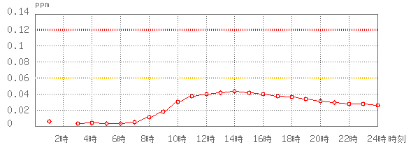 ※グラフ中には0.060ppm(環境基準:1時間値)と0.120ppm(注意報発令の基準:1時間値)に参考として線を記載しています。