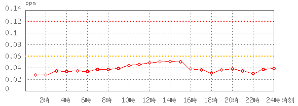 ※グラフ中には0.060ppm(環境基準:1時間値)と0.120ppm(注意報発令の基準:1時間値)に参考として線を記載しています。
