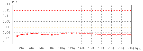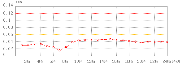 ※グラフ中には0.060ppm(環境基準:1時間値)と0.120ppm(注意報発令の基準:1時間値)に参考として線を記載しています。