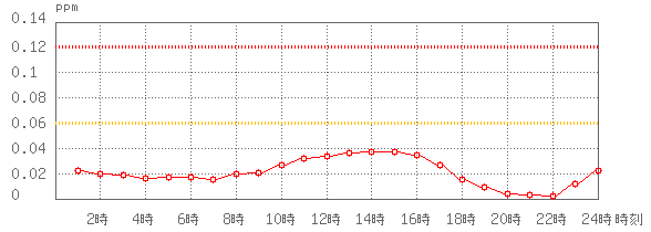※グラフ中には0.060ppm(環境基準:1時間値)と0.120ppm(注意報発令の基準:1時間値)に参考として線を記載しています。