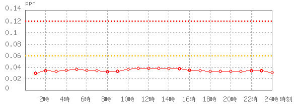 ※グラフ中には0.060ppm(環境基準:1時間値)と0.120ppm(注意報発令の基準:1時間値)に参考として線を記載しています。