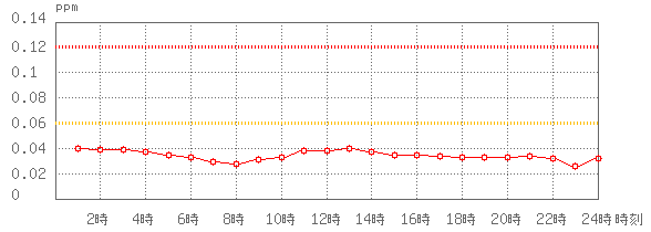 ※グラフ中には0.060ppm(環境基準:1時間値)と0.120ppm(注意報発令の基準:1時間値)に参考として線を記載しています。